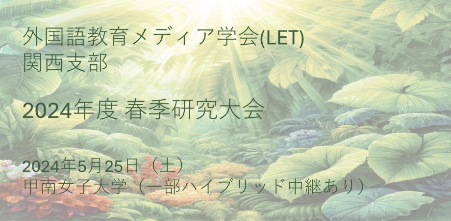 LET関西支部では、2024年5月25日(土)に甲南女子大学にて、春季研究大会を開催します。大会に関する情報は外国語教育メディア学会関西支部サイトや公式 X(旧Twitter)をご... powered by Peatix : More t...